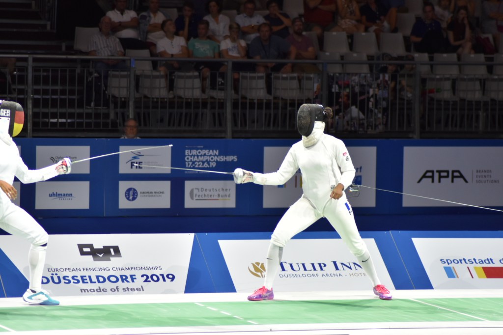 Pas top parce que je pense que je n’avais pas vraiment réalisé ce que ça allait être. Je n’avais pas vraiment réalisé, avant d’y être, la pression, ce que c’était d’être la seule représentante de l’épée dames. C’est vrai, lorsque le jour de la compétition j’ai réalisé ça juste avant le match, je n’ai pas très bien géré.